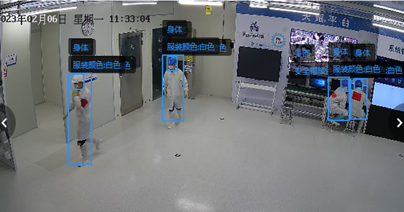 現(xiàn)存問題點(diǎn): 因現(xiàn)場為無塵車間,需員工統(tǒng)一身穿白色無塵服佩戴小工帽,因廠商或工作人員急忙進(jìn)入車間不按要求進(jìn)入,需通過AI識別技術(shù)判別員工著裝合規(guī)性 解決方案: 攝像機(jī)部署在關(guān)鍵出入口前,識別進(jìn)出人員是否著裝正確,如若異常進(jìn)行現(xiàn)場語音提示,并將該事件上傳至環(huán)安部。